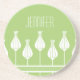 Chic and elegant Art Deco Floral Coaster featuring a bold stripe intersecting a row of elegant art deco flowers. This lovely floral coaster offers a stylish way in which to protect your furniture and may be customized with a name or other personalized text. Click on the "Customize It" to change fonts, text colors or to add/remove additional text.
