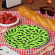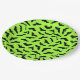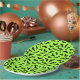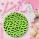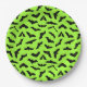 These paper plates feature a cute and spooky pattern of flying black bats with yellow eyes on a lime green colored background, the perfect addition to your Halloween party!
