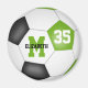 This soccer team colors magnet for boys or girls features the image of a realistic soccer ball, with some of the typically black panels recolored lime green, upon which you can easily customize the athlete's name, monogram & jersey number - by katz_d_zynes