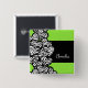 Lime green black white zebra pattern heart name pinback button