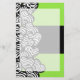 Lime green black white zebra pattern heart name stationery