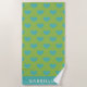 Lime Green Blue Cute Heart Pattern Personalized Beach Towel