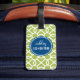 Lime Green & Blue Geometric Pattern Monograms Luggage Tag
