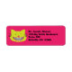 These cute return address labels are perfect for braces wearers and orthodontists. They feature a cute cartoon illustration of a lime green cat wearing braces against a bright magenta background. Use the template field to easily fill in your own name and address.