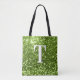 Lime Green Faux Glitter Bokeh Sparkly Monogram Tote Bag