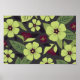 A lively floral pattern featuring lime green flowers with deep maroon centers, set against a sophisticated dark gray background. The design is accentuated by rich green leaves and additional maroon blossoms, creating a striking and modern contrast. This pattern is perfect for those looking to add a bold and refreshing touch to their products with a contemporary botanical vibe.