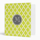 Lime Green Modern Moroccan Pattern Custom Monogram Binder