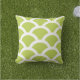 Lime Green circles trellis modern outdoor pillow. Made in the USA. Vivid, colorful high quality printing. UV and mildew resistant garden or patio pillows with modern patterns in bright summer colors. Available in 16 or 20 inch square and 13 by 21 rectangular sizes. Insert included. (Also available as an interior couch or sofa accent throw pillow, just select cotton or polyester from the Fabric tab and select the size you need).