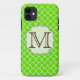 Lime Green Quarterfoil Lattice Quarter Foil Monogram Initial Personalized Custom Fabric Pattern IPHONE 5 Case