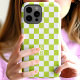 Lime Green Retro Checkered Pattern Monogram Case-Mate iPhone Case