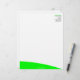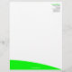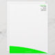 A classic lime green rolling hill letterhead, available in 5 paper types. The design features your company name (in lime green) and company message (in black) at the top, followed by lines of optional addresses and contact information (in gray). At the bottom of the page is a solid lime green hill with an optional web address (in white).