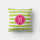Lime Green Stripes with Hot Pink Monogram Throw Pillow