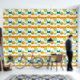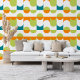 This design showcases a modern geometric pattern with waves and half-circles in shades of orange, white, sunny orange, teal blue, and lime green. It's an elegant and stylish design that embodies eclectic minimalism, perfect for artistic interior designers, decor enthusiasts, trendsetters, and fans of vintage retro or abstract digital geometric motifs. This ornate yet funky hipster pattern is versatile, available on a variety of contemporary home decor items, making it suitable for enhancing the ambiance of spaces such as master or children's bedrooms, kitchens, nurseries, living rooms, woman caves, college dorms, condos, studios, or apartments.
