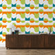 Lime Green Teal Blue Orange White Circles Pattern Wallpaper