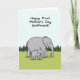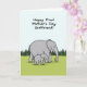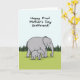 This greeting card shows two stylized elephants in soft gray standing close together on a bright lime-green patch of ground, with the larger one slightly behind the smaller as if gently watching over it ❤️. The little one faces forward with a small, curved trunk that adds a shy, affectionate tone to the scene. Their simple shapes and dark outlines keep the focus on their calm closeness and the quiet bond between them. In the distance, a row of dark green, triangle-shaped evergreen trees stretches across the horizon, giving the background a tidy, storybook feel. Above the trees, a wide pale blue sky leaves plenty of open space, making the design feel airy and peaceful 🌼. A short Mother’s Day message sits high in the sky area in a dark tone, centered and easy to spot against the light background. The text has a casual hand-drawn look, like a note written with care, and it sits well above the elephants so the characters remain the main focus. The scene is finished with flat, gentle colors: gray elephants, lime-green ground, dark green trees, and a soft blue sky.