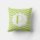 Lime green, white chevron zigzag pattern throw/toss accent decorative pillow with monogram in a grey frame.
