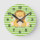 Lime Green-White Stripes•Lion•Custom Round Clock