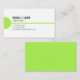 White business card with lime green details. The minimalist business card features a lime green half circle and thin lime green line. Add your name, title, and contact information in black and gray.