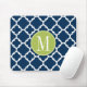 Lime & Navy Geometric Pattern Custom Monogram Mouse Pad