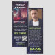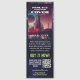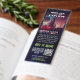 Cool promotional bookmark for a science fiction author promoting their newest book. Against a sci fi background with a hint of a galaxy pattern add your book cover, a tagline or short summary, and a QR code your readers can scan to easily find where to buy your book online. On the back, add your author's profile photo and, beneath light lime green social media icons, your social media handle. The perfect marketing bookmark to promote your new sci-fi novel or any kind of futuristic book.