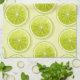 A pattern of fresh & juicy lime slices in bright, vivid shades of lime green, with a watercolour texture to give it that freshly cut look. They are placed on a light yellow / green background for a bright & summery look.