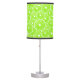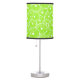 The lamp looks exactly like the picture, bright and colorful. The lamp shade is plastic not what I expected, however I love it! The printing is clear and the name can easily be read.