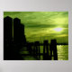 a surreal abstract lime green sky with a realistic foreground of a marina and silhouete of buildings. taken in SW Florida.