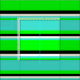 This design features a pattern of stripes with colors like lime, turquoise, beige, and black.
