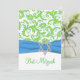 Lime, White, Blue Damask PRINTED RIBBON Invitation