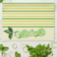 This colorful towel features beautiful graphics of a whole lime, some lime wedges and lime slices at the bottom. The remaining part of the towel is a pattern of alternating yellow and lime green stripes against a white background. There's another coordinating towel, as well as an oven mitt and pot holder set and an apron in my shop too, so take a peak!