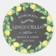 Decorate your home made limoncello bottles with this lovely classic round sticker and choose between a white and charcoal background to pair with lemon leaves and a fruit wreath in the foreground. All script is in a serif font that makes an elegant complement to the illustrations.