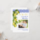 The "save the date" is the perfect add-on to the Limone wedding suite. It beautifully captures the essence of an Italian-inspired celebration, combining the bright zest of lemons with the timeless elegance of blue mosaic tiles. The back of the invitation features a rich, deep blue mosaic tile pattern, reminiscent of traditional Italian ceramics that add a touch of sophistication and old-world charm. On the front, lively yellow lemons, complete with lush green leaves, are artistically scattered down the side of the invitation, adding a fresh, vibrant feel. Easily personalize this invitation with your own details including photo and QR code by clicking on the personalize button on the main page.