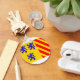These are a durable metal and the colors are vibrant. One of the clasp came broken but received a new one quickly. Customer service was responsive and quick to resolve the issue. They are bigger than I thought but still work for my wedding. I am satisfied with the print quality and surprised at how vibrant the colors are.
