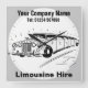 Luxury car hire company. Stretch Limo illustration. Promote your Limousine Hire business - with your choice of company name and phone number. Includes faint clock face background.