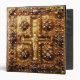 This magnificent binder features a print of the famous golden cover of the illuminated manuscript, the Lindau Gospels. You can read more about the Lindau Gospels here: http://www.historyofinformation.com/index.php?id=2217