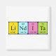 Lindita spelled out as Li Nd I Ta (Lithium Neodymium Iodine Tantalum) on a magnet for the scientist in you.