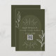 Wedding RSVP with green color scheme, arch, and white text and botanical line art details. Replace the QR code with your own.