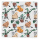 Line art drawing cats and flowers faux canvas print
