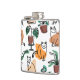 Line art drawing cats and flowers flask