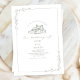 Line Art Rustic Barn Sage Green White Wedding Invitation