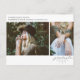 Custom 2 photos with name, school, and year at top with "graduate" script line art at bottom. Background on front is white. Personalize the invitation on back.
