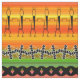 Stick figures "Line Dance" in rows with other shapes on a colorful gradient background.