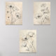 Line Drawn Black Wildflowers on Beige Sepia Tone Wall Art Sets