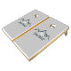 Natural Wood Cornhole Set, Yellow and Purple bags