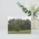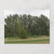This stunning postcard features a photograph of a line of trees and the edge of some grassland. The photo was taken in Britain on a nature reserve. The trees look like they are leaning to one side.