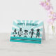 Blue, black and white line of robots on a platform in front of a sunburst. This cute card is perfect for any young Sci-fi lover. 2014 © Design by Julia Bryant.