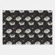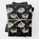 Lined Black Cat With White Flowers Wrapping Paper Sheets