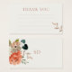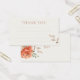 These lovely wedding thank you card features text in a rich ochre color against a chic ivory background. The design includes a lined area for brides who prefer to hand write their cards. The template also allows for the lined area to be replaced with text, if you prefer a printed text version. The colorful floral illustration at the back, excudes a joyful tone and a youthful elegance. Couple initials side by side at the back.