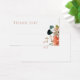 These lovely wedding thank you card features text in a rich ochre color against a crisp white background. The design includes a lined area for brides who prefer to hand write their cards. The template also allows for the lined area to be replaced with text, if you prefer a printed text version. The colorful floral illustration excudes a joyful tone and a youthful elegance. Couple initials side by side at the back.