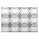This cloth placemat has a mid-century modern design of black vertical lines with hexagons strung horizontally on a field of white.